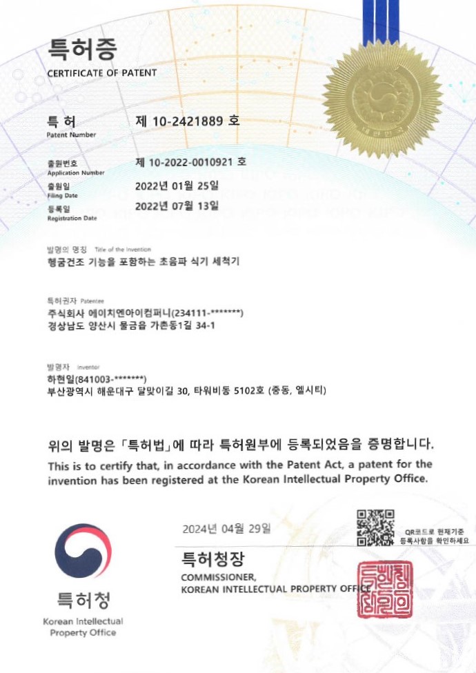초음파식세기에 넣었다가 빼기만 하면 설거지 끝!
